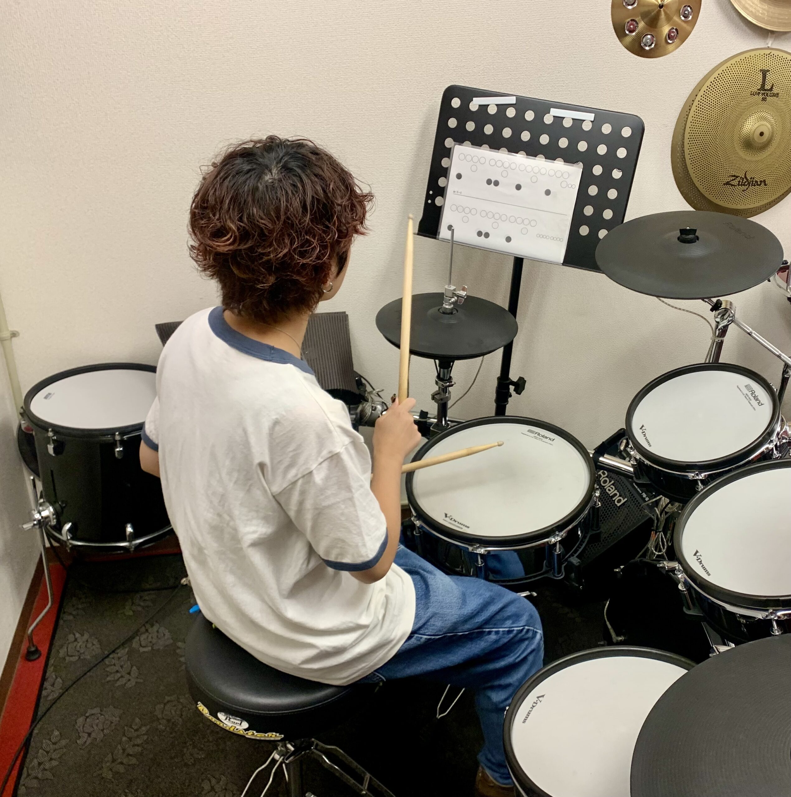 だんだんとドラムを叩いている姿がサマになってきました。